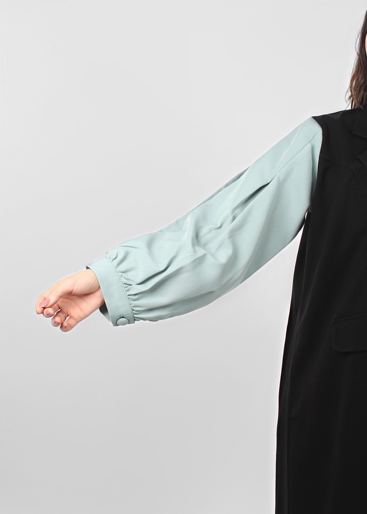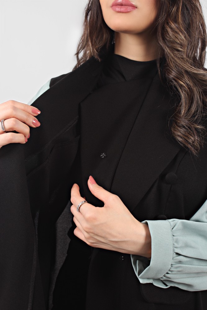 مميزه بـ قماش ذا لونين مختلفين الاسود والتيفاني المُكسر على الأكمام مناسبه للدوام والجامعه ويوميه